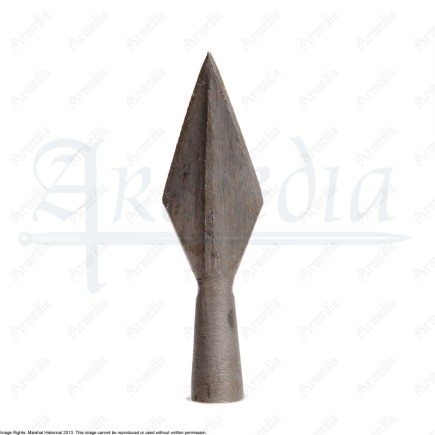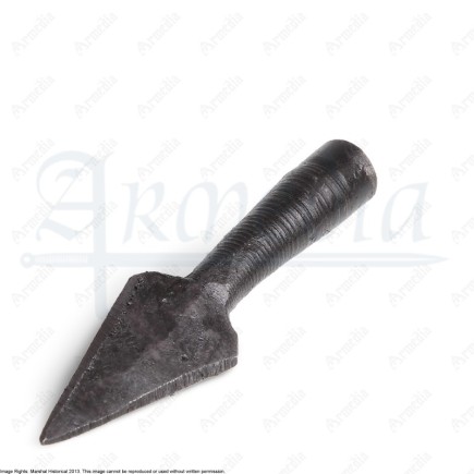 Pointe de flèche en acier forgé. Longueur totale : 66mm Longueur de la pointe : 41mm Diamètre extérieur : 9.5mm Diamètre intérieur...